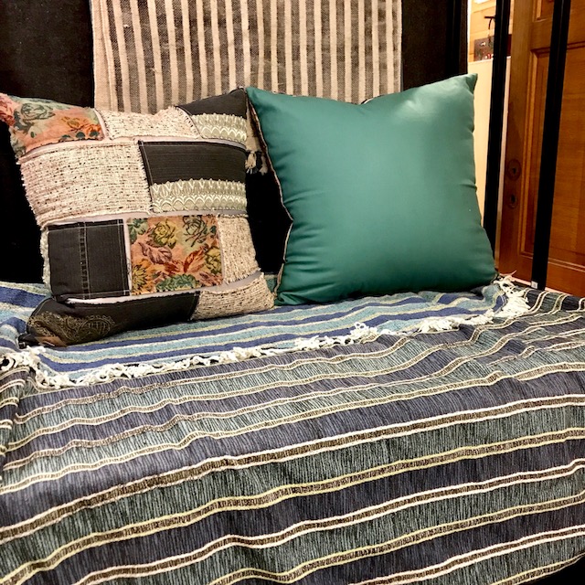夏のインテリアにピッタリなブルーの織り生地が素敵♪