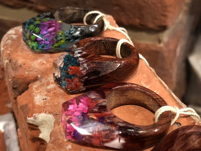 本物の植物を樹脂で固めた素敵なバングルやリング♪