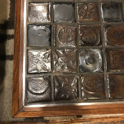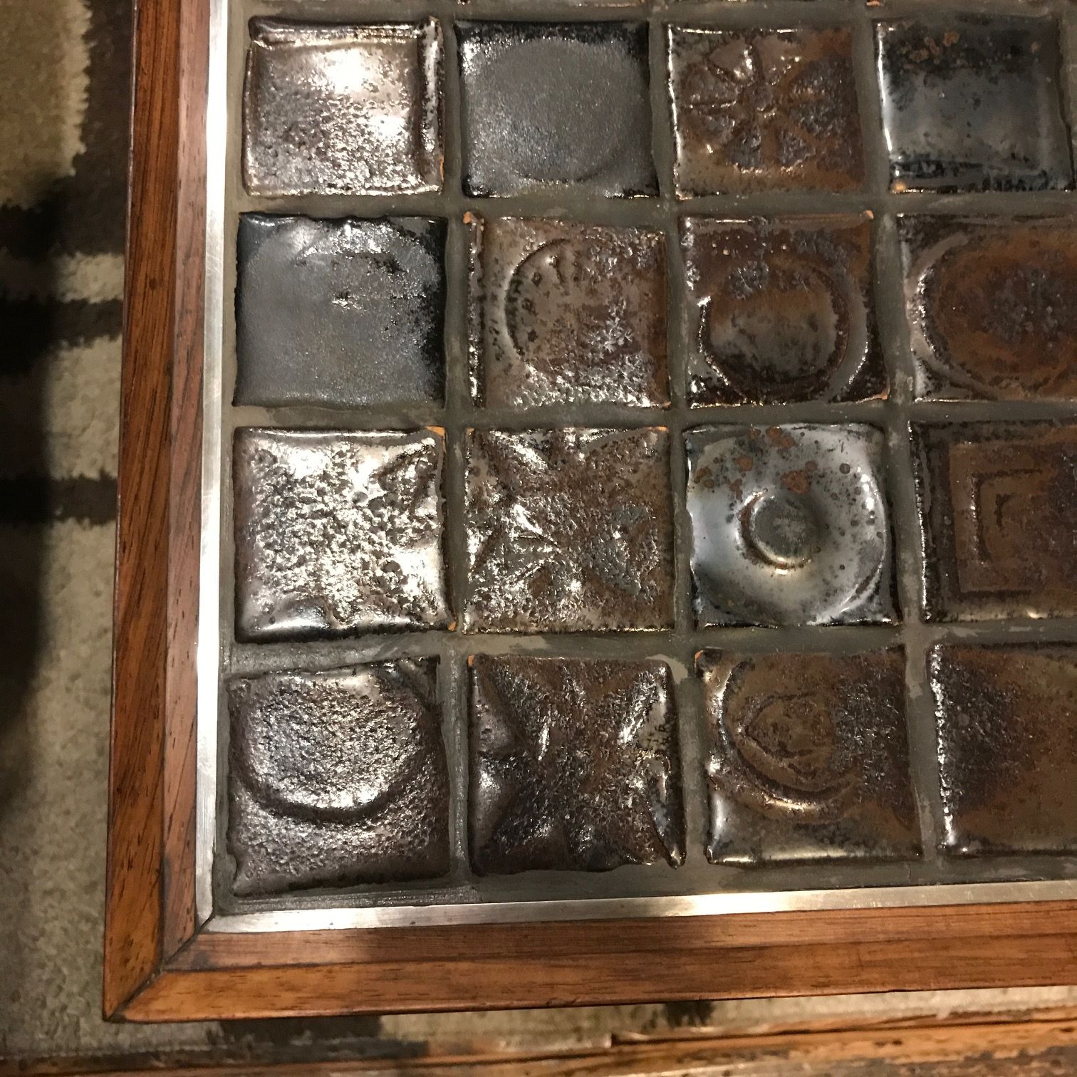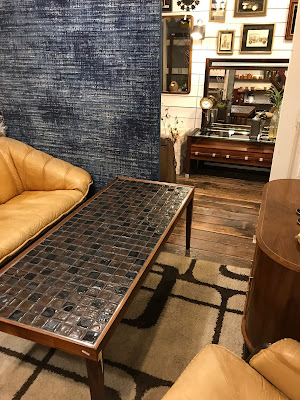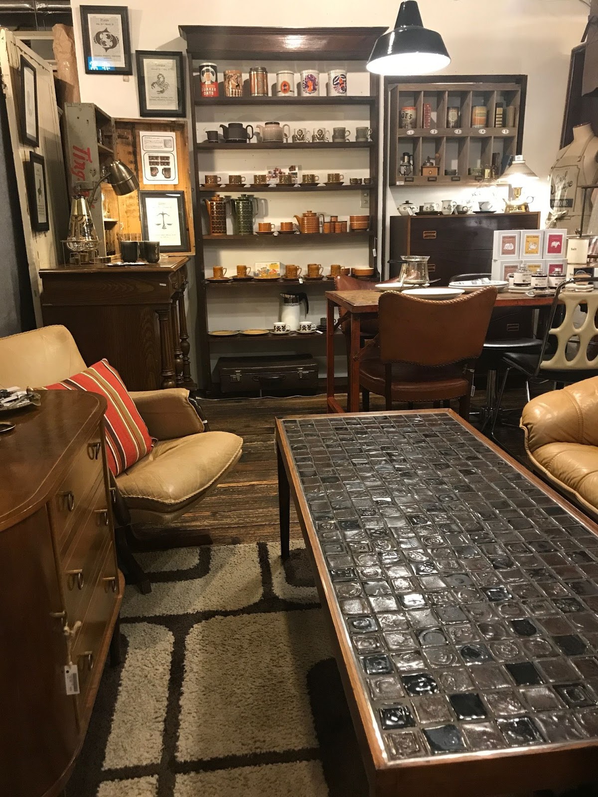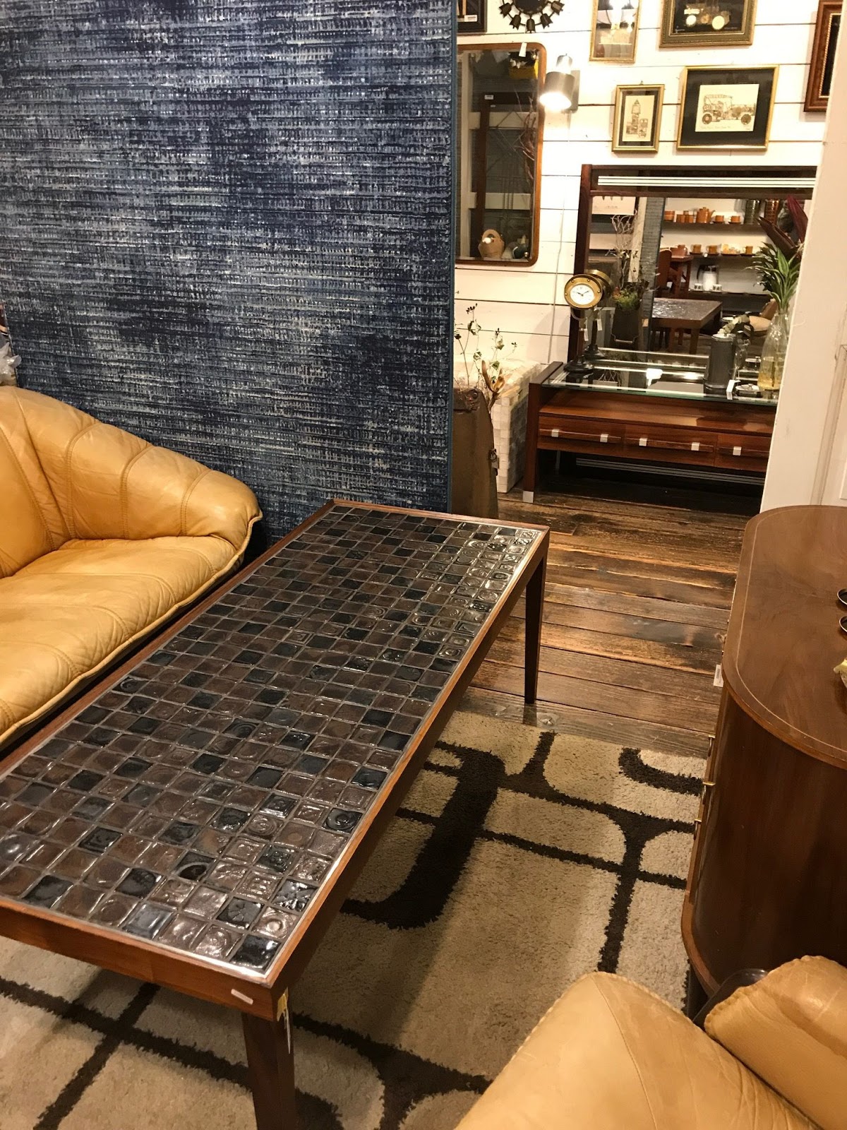 ヴィンテージのタイルコーヒーテーブルを主役のリビングコーナー。