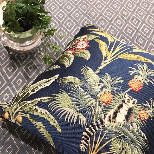 一目惚れのフランスジャガード生地で、クッションカバーが完成♪