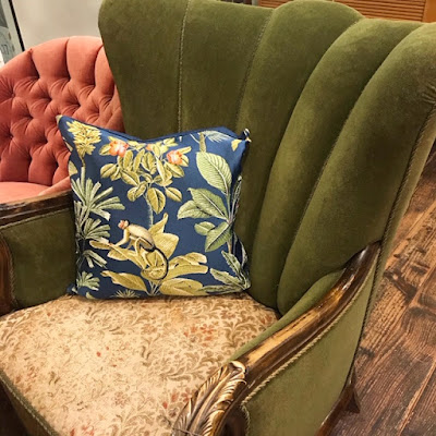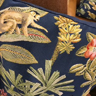 一目惚れのフランスジャガード生地で、クッションカバーが完成♪