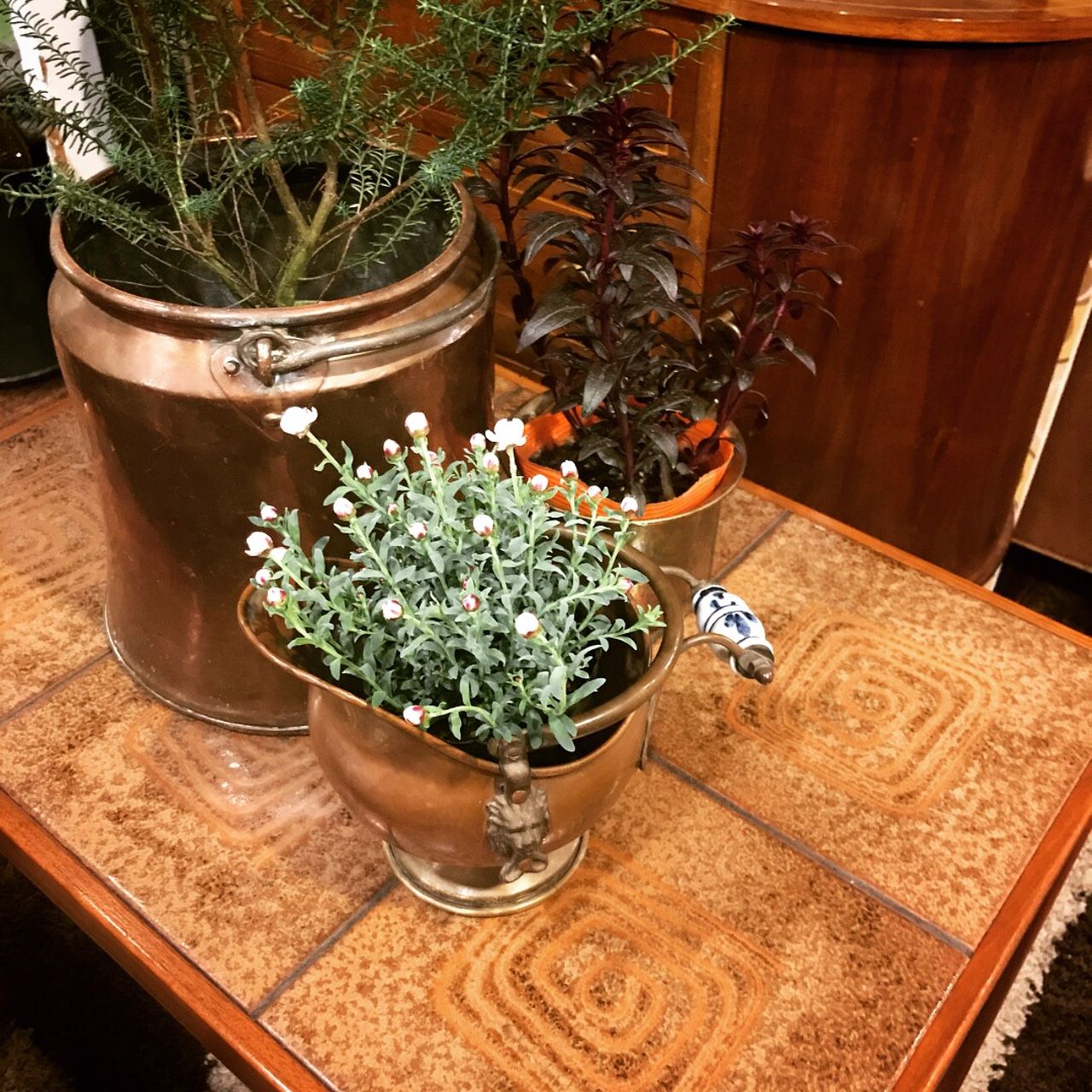ヴィンテージのタイルコーヒーテーブルを主役のリビングコーナー。