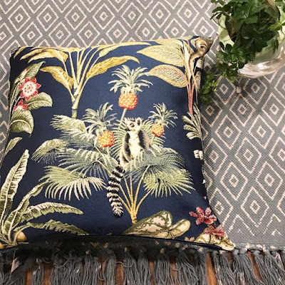 一目惚れのフランスジャガード生地で、クッションカバーが完成♪