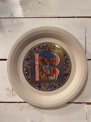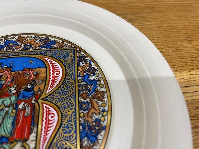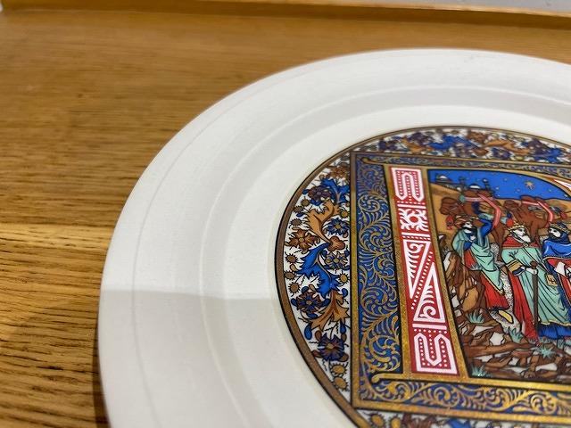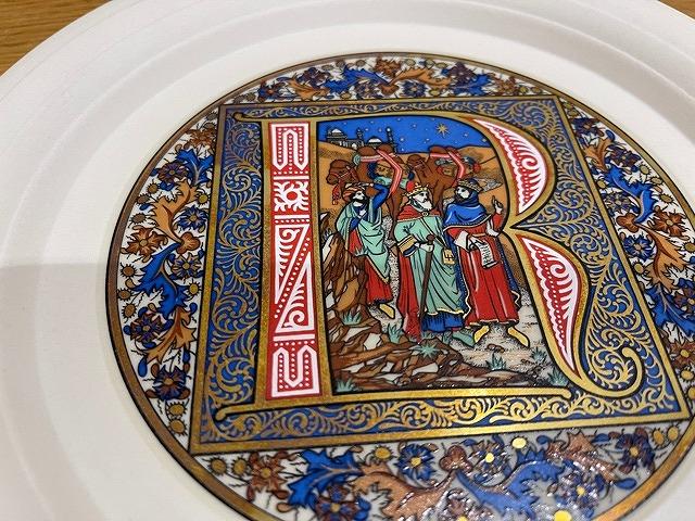 全9枚のシリーズで「CHRISTMAS」の綴りの1文字ずつがプレートにデザインされています。マットな質感の陶器に、ゴールドをの彩色で華やかにイエス・キリストの生誕のワンシーンが描かれた華やかなウォールプレートです。
