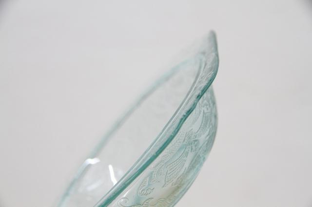 細かい刻印が施されており、高級感があるプレートになっております。淡い青のグラスを是非お試し下さい。