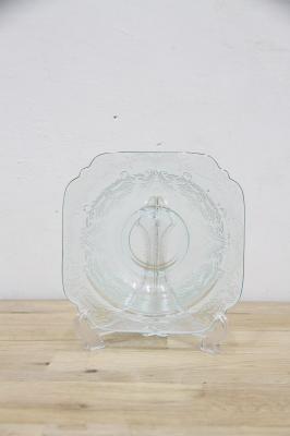 細かい刻印が施されており、高級感があるプレートになっております。淡い青のグラスを是非お試し下さい。