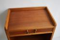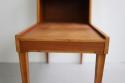 1950年代スウェーデン製のナイトスタンドです。使用されている木材はチーク、マホガニーと並んで世界三大銘木のひとつに挙げられるウォールナット(くるみ)。2段になっていますので上に植物や照明をを置いて、下の段には本を置いたりベッドサイドはもちろん、ソファー横に置いてもちょうど良く使える収納家具です。