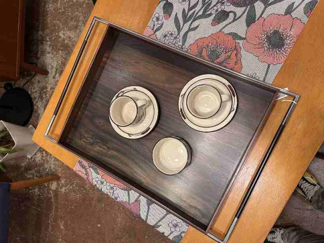 持ち手付きヴィンテージ木製トレイになります。