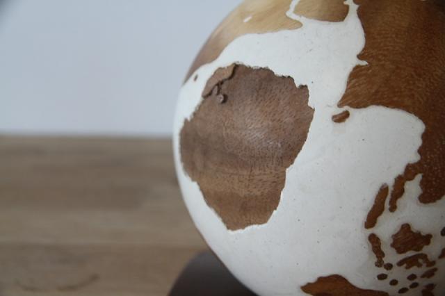 ウッドの台座に、天然木と樹脂を使用した地球儀をセットできます。