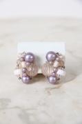 アメリカ製、レトロな渦巻きがかわいいヴィンテージイヤリングです。オレンジの入ったようなピンクは、パッと顔回りを華やかにしてくれます♪
