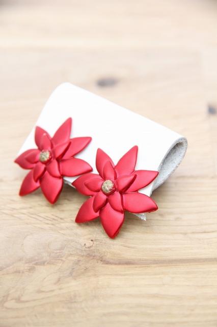 アメリカ製、レトロで元気な赤のお花のデザインのヴィンテージイヤリングです。パッと顔回りを華やかにしてくれます♪