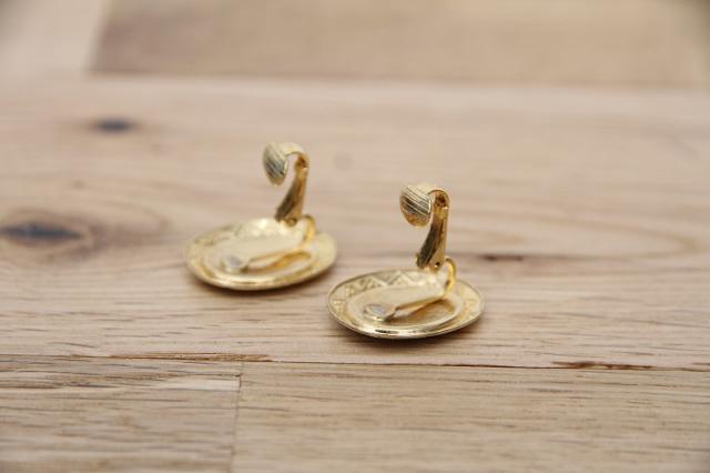 アメリカ製、落ち着いたベージュとフレームの模様が素敵なヴィンテージイヤリングです。とても軽いので耳への負担も少ないです。