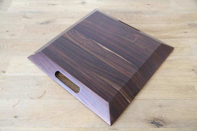 朝食やティータイムのトレイとしてだけでなく、リビングで小物や本を置くディスプレイとしてもお使いいただけます。持ち手部分も木をくり抜いて作られており、手に馴染むなめらかな手触りです。