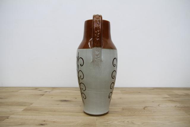 可愛らしいお花と葉っぱの彫りが素敵な取っ手付きで持ち運びがしやすく、33.5cmの高さがありますので、丈の長い枝ものなども茎をカットしないままで飾ることもできます。