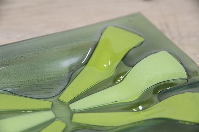 フュージングとスランピングという技術を駆使した技法で、独特な世界観のあるガラスです。