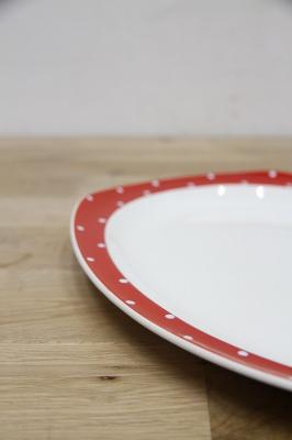 赤いドットは一つ一つ手描きで描かれており、その温かみが魅力です。