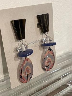 ●素材・成分:素材:ガラス、シリコン付きバネイヤリング、 リバティ、イタリアビーズ、アクリルパーツ