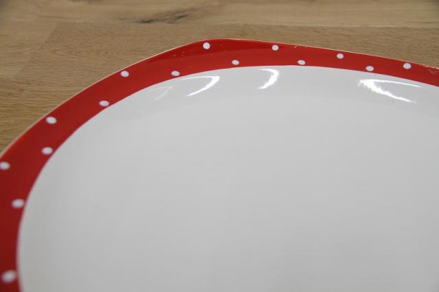 赤いドットは一つ一つ手描きで描かれており、その温かみが魅力です。