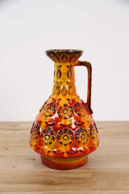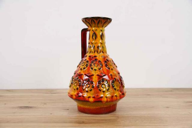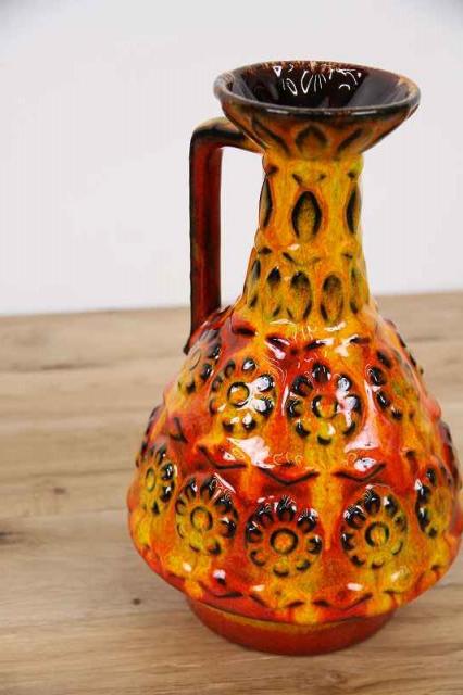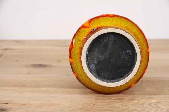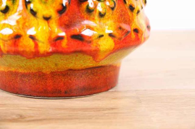 西ドイツにて製造されていたFatlavaという名がついた陶磁器、BAY Keramik社製のフラワーベースです。太陽のような、マグマのような、流れて動いているようにも感じさせる釉薬の仕上げ。パワーをもらえるようなそんな存在感がある花器です。