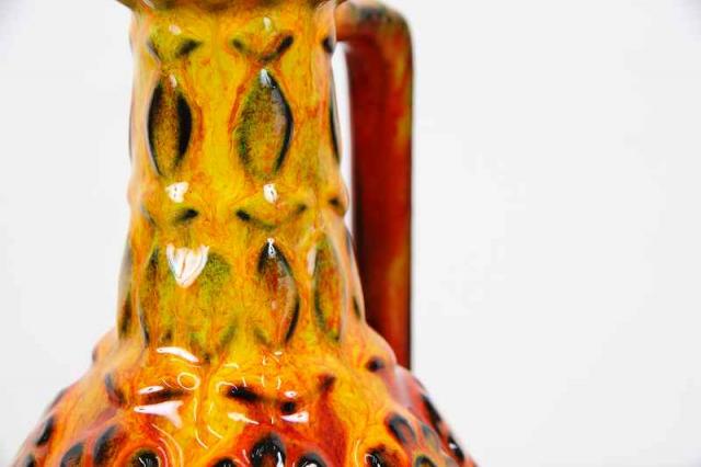 「Fat Lava」とは、1950~70年代に主に旧西ドイツで生産されていた陶磁器の一種。「肥えた溶岩」と直訳できるその意味のとおり、火山口から流れ出た溶岩を彷彿させる釉薬の色使いや仕上げ方が最大の魅力です。
