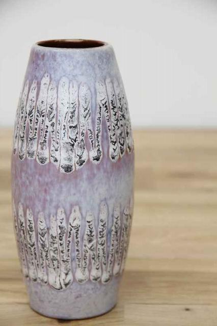 ドイツ製ヴィンテージの陶器のフラワーベースです。キレイなラベンダー色と、ギザギザと上下に描かれた模様が印象的ですね。優しい雰囲気のある素敵な花瓶です。