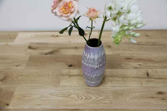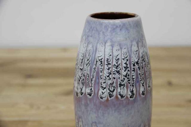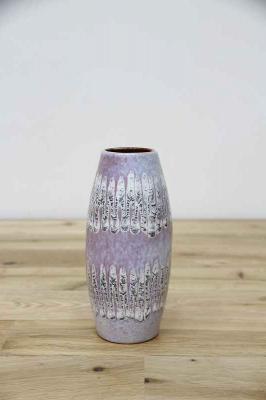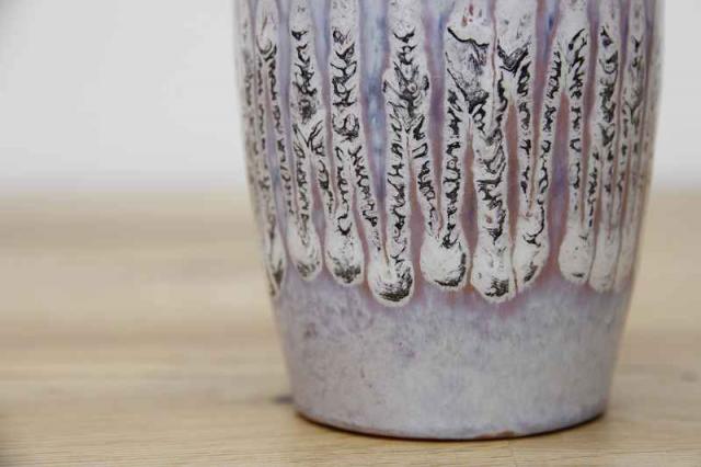 ドイツ製ヴィンテージの陶器のフラワーベースです。キレイなラベンダー色と、ギザギザと上下に描かれた模様が印象的ですね。優しい雰囲気のある素敵な花瓶です。