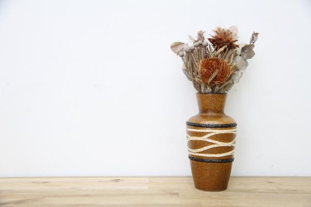 ドイツScheurich社製、Fat Lavaと呼ばれるヴィンテージのフラワーベースです。カフェオレの色、泡立ちをイメージするようなデザイン。焼チョコのようなボコボコとした泡のような釉薬の仕上げもとても特徴的な花瓶です。