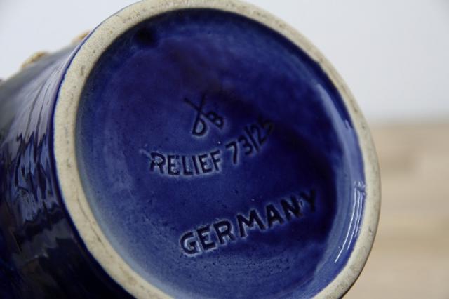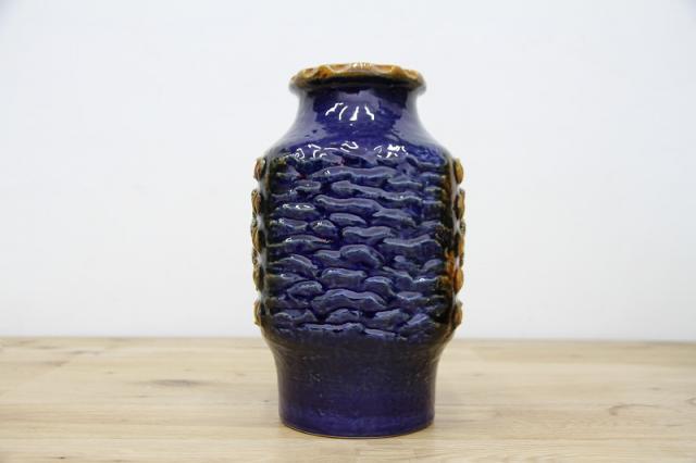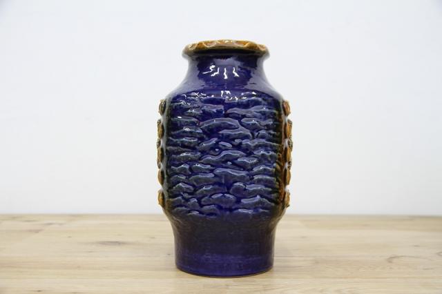 ドイツDumler&Breiden社製のヴィンテージフラワーベース、陶器製です。花と実でしょうか、凹凸感あるデザインと、堂々たる青の色の威力を感じる存在感あるアイテムですね。お花と合わせる楽しさと、この花瓶自体をオブジェとしてお部屋のインテリアとして楽しんでいただけたらと思います。