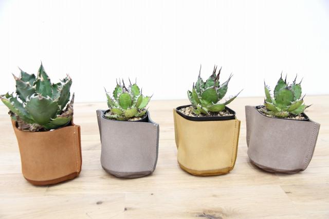 グリーンや多肉に雰囲気をグッと格上げし、お部屋のインテリアとして活躍するレザーポットです。