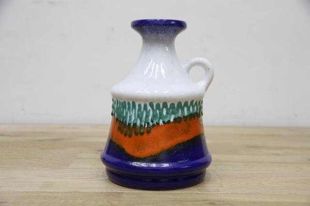 東ドイツStrehla社製のフラワーベースです。共産圏だった東ドイツは、西ドイツよりも生活にかかわるすべてのことが保守的で、このフラワーベースもおそらく輸出用に生産されたものだと言われています。カラーコントラストが大変美しい一点です。