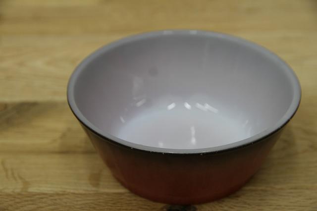 底の部分がフラットなタイプのファイヤーキングのボウルです。積み重ねて収納する事もでき、本当に使い勝手がよいアイテム。サラダ、シリアル、スープなど、様々な用途に使える便利な形。