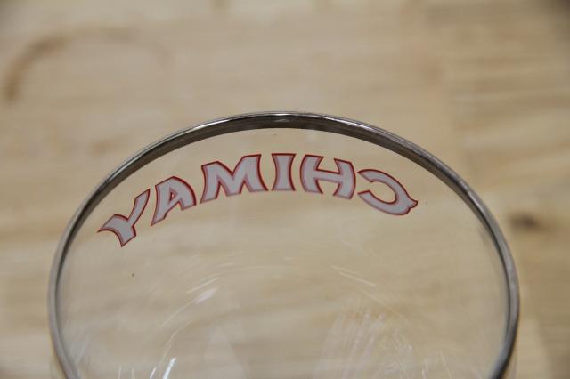 ベルギービールの代表格でもあるかもしれませんね、CHIMAYシメイビールのロゴがプリントされたビアグラスです。