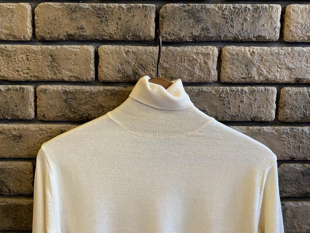 シルクは最高品質の家蚕ペニーA‐1を使用。品のある光沢と家蚕特有のしなやかでソフトな風合いを持つ家蚕シルクに、これまた最高品質のアラシャンカシミヤを混紡した高級素材です。アラシャンカシミヤとは、中国内蒙古自治区西部のある特定の地域において産出される、中国で一番細く、風合いの良いカシミヤです。その素材で長い期間重宝する16ゲージのタートルネックP/Oを作りました。