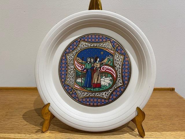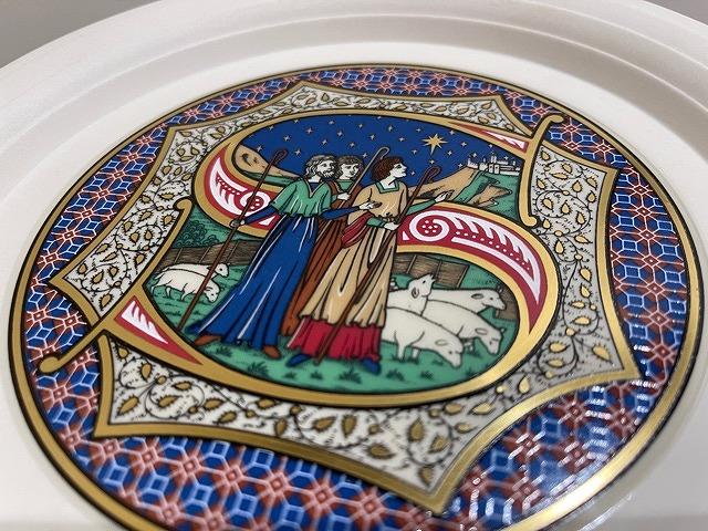 全9枚のシリーズで「CHRISTMAS」の綴りの1文字ずつがプレートにデザインされています。マットな質感の陶器に、ゴールドをの彩色で華やかにイエス・キリストの生誕のワンシーンが描かれた華やかなウォールプレートです。