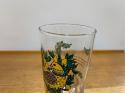 こちらのグラスはその1日目。ヤマウズラが描かれています。時代を感じるポップなデザインで、ハート形の木がとてもかわいいです。
