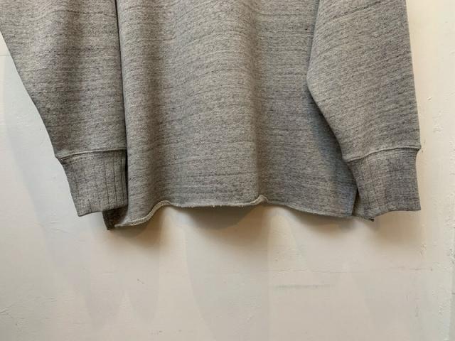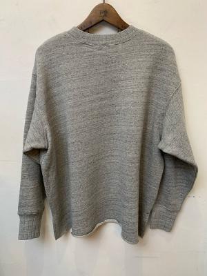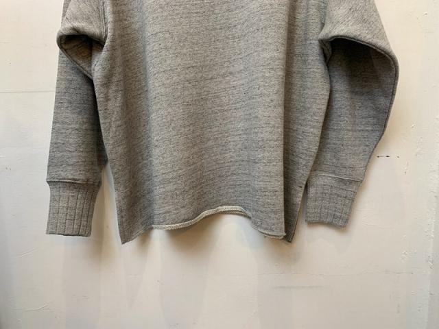 トンプキン裏毛とは、糸に負荷をかけずにゆっくり時間をかけて編まれたもので、やわらかくふっくらとした手触りが特徴です。今回はさらに目を詰めてボリューム感を出しています。リブは針抜きに編み立てて、縫製後ピグメント加工をすることで古着のような味のある仕上がりに。