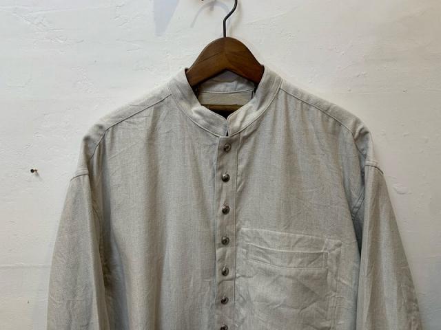 古い時代のヨーロッパのワークジャケット。その素朴な佇まいに惹かれ、現代的に再解釈したオーバーシャツを作りました。生地には、コットンリネンのソフトでナチュラルな風合いが魅力の綾織り素材を使用。
