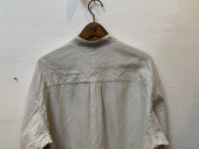 洗い加工によって生まれた自然なシワ感が、ヴィンテージのような奥行きを感じさせます。襟はスタンドカラーで首元をすっきりと見せ、洗練された印象を与えてくれます。