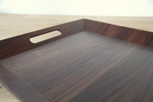 朝食やティータイムのトレイとしてだけでなく、リビングで小物や本を置くディスプレイとしてもお使いいただけます。持ち手部分も木をくり抜いて作られており、手に馴染むなめらかな手触りです。