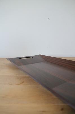 朝食やティータイムのトレイとしてだけでなく、リビングで小物や本を置くディスプレイとしてもお使いいただけます。持ち手部分も木をくり抜いて作られており、手に馴染むなめらかな手触りです。