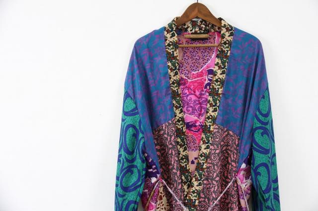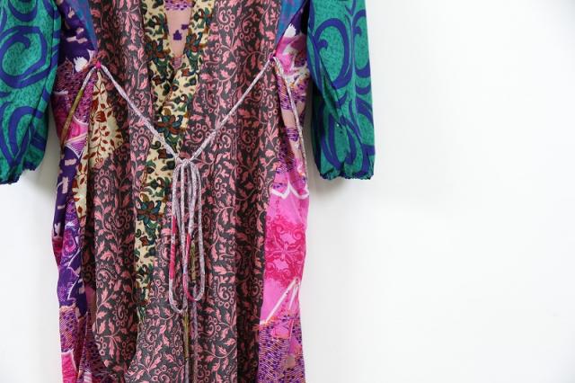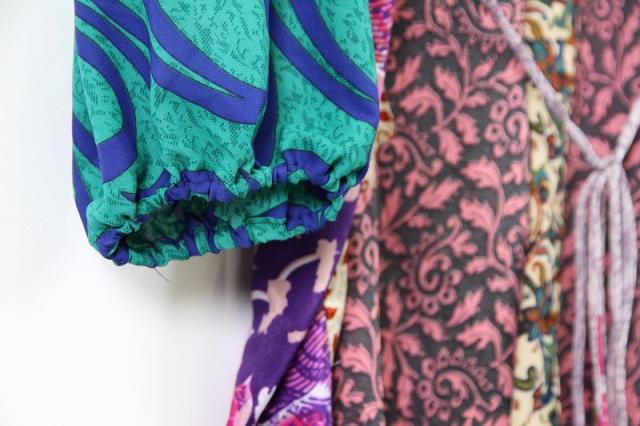 インドサリーのヴィンテージシルクを厳選しアップサイクルとして使用。デンマークのデザイナーが異なる生地の組み合わせでワンピースやスカートに再構築しているブランドです。独特な生地の色や柄の組み合わせ、唯一無二のその美しさには脱帽です。