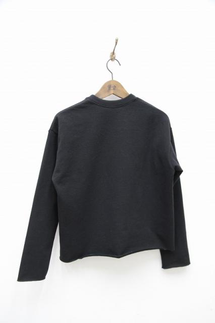 伸縮性とフィット感のあるスウェット生地を使用した、シンプルなデザインのプルオーバー。肌当たりの良い裏毛仕様なので、快適に着ていただけます。裾口と袖口はカットオフになっており、一枚で着用してもアクセントに。ベーシックなボックスシルエットで、合わせるボトムスを選ばず着回しのきくアイテムです。