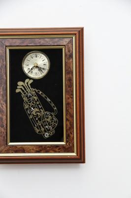 1970年代にイギリスで、Ken Broadbentによりヴィンテージの自動巻き腕時計のムーブメントパーツを使ってコラージュされた掛時計です。