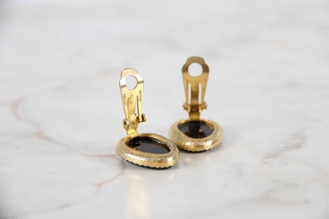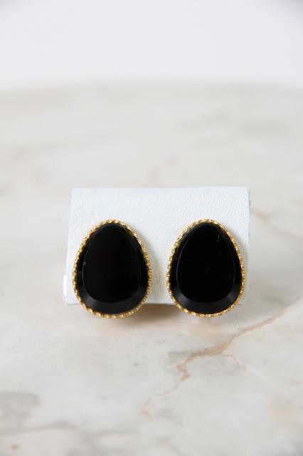 アメリカ製、ティアドロップ型のヴィンテージイヤリングです。ブラックとゴールドの組み合わせでとてもクラシカルなデザイン。フォーマルスタイルの時にもおすすめ。