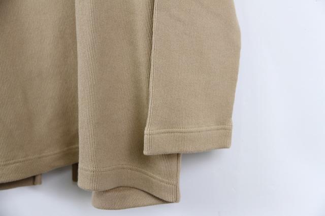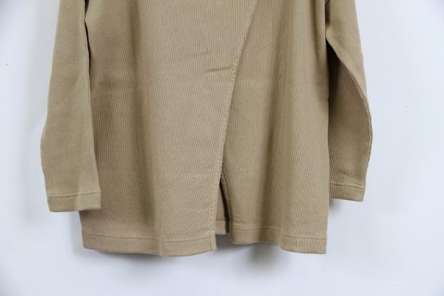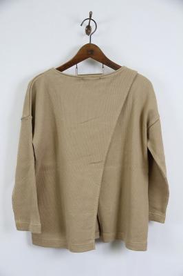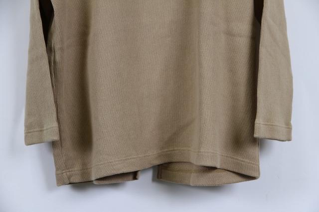 岡山県倉敷市より1952年創業のブランド、Johnbull(ジョンブル)より、バックデザインがポイントのカットソーです。後ろ身頃が2枚に分かれており、裾はスリットのように見えるデザインになっております。繊維が長く、発色がいいコットンの空紡糸を使用しているため、肌触りの良い着心地になっております。リブのような編地は凹凸の差が通常より深くなっているため、奥ゆきのある表情の生地感です。他にはあまりないような上質な生地で、着込んでいくほどに味のある風合いをお楽しみいただけます。淡いカラーが春らしく、肩肘は張らないけれども洗練された印象に。