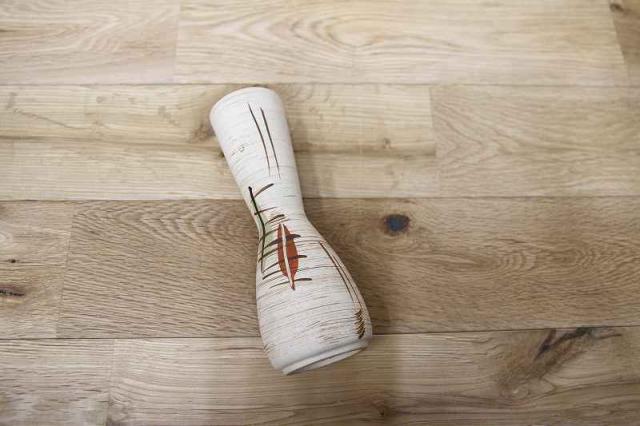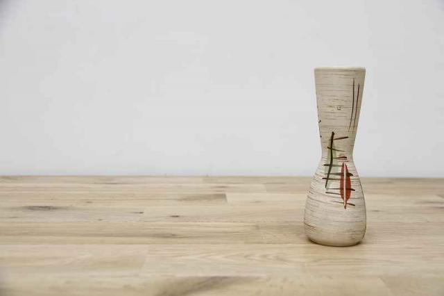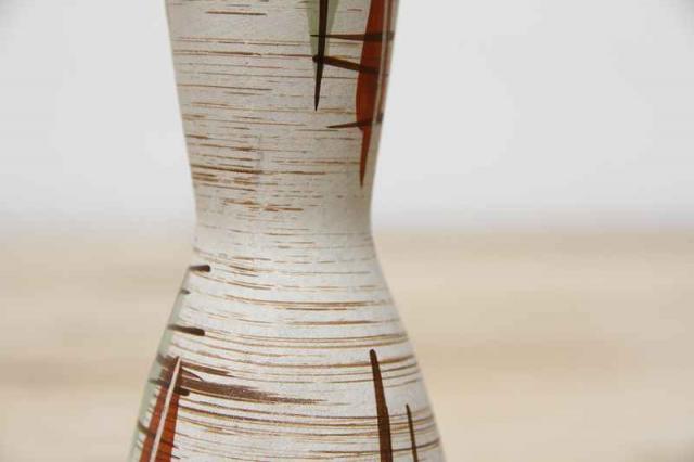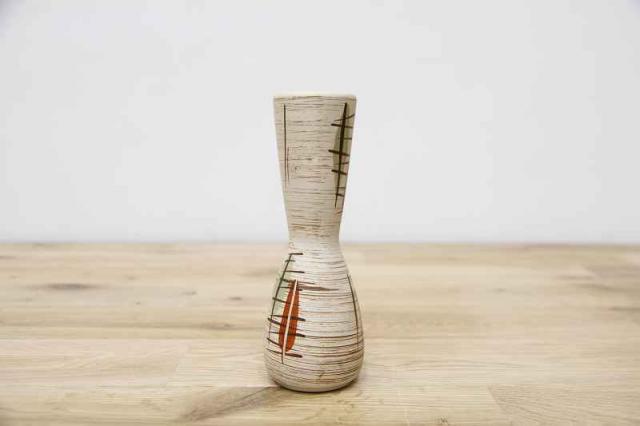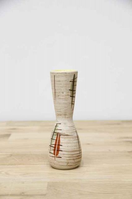 ドイツ製ヴィンテージのフラワーベース。全体的にマットな質感で仕上げられた陶器製の花瓶です。ハンドペイントで葉っぱが描かれています。和のテイストにも相性が良さそうなデザインです。