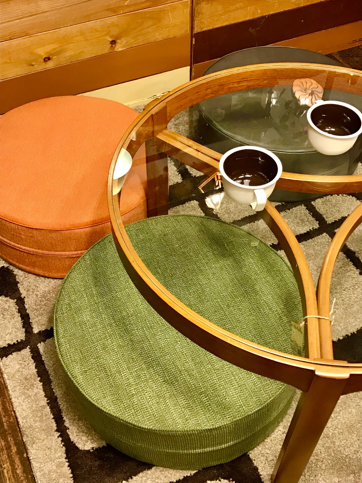 一人がけソファを置くほどではないけれど、座布団やクッションでは厚みが足りないときにおすすめな丸スツール。