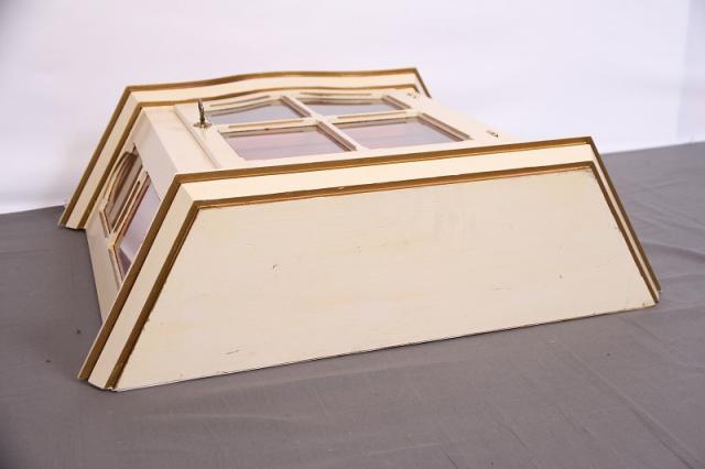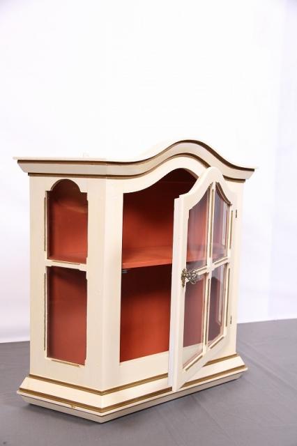 デンマークの買付で入荷したウォールキャビネットです。置型としてもお使いになれます。扉の取手が鍵のようなデザインで、ますます雰囲気があがります。アイボリーの本体と中の赤茶のカラーリングの相性抜群。