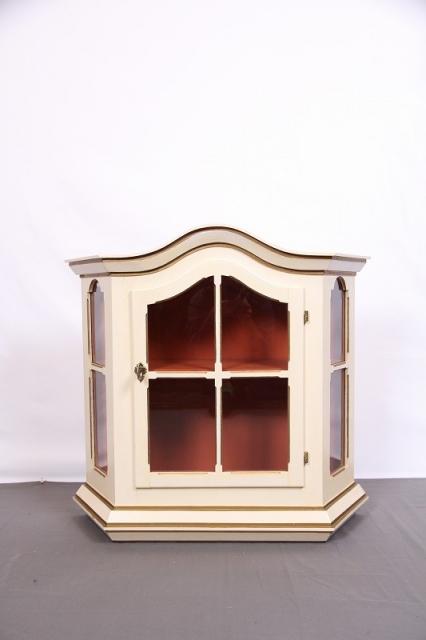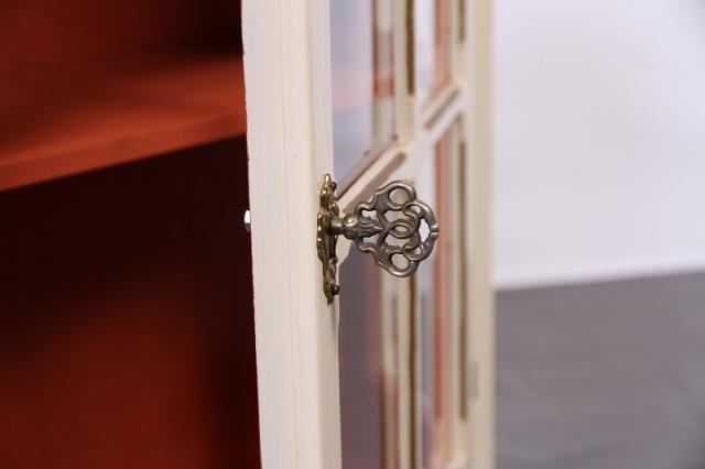 デンマークの買付で入荷したウォールキャビネットです。置型としてもお使いになれます。扉の取手が鍵のようなデザインで、ますます雰囲気があがります。アイボリーの本体と中の赤茶のカラーリングの相性抜群。