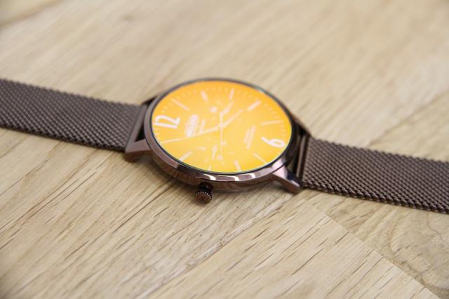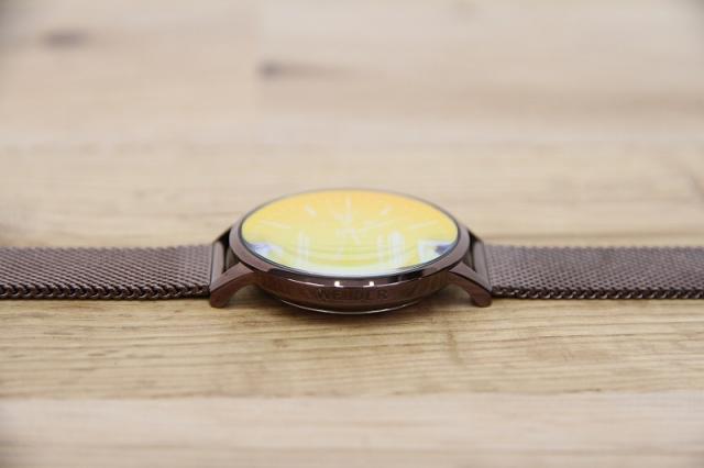 フォトジェニックなファッションウォッチ、WELDERの腕時計です。光の角度に応じて色を変える、”フォトクロミックガラス”を採用したMOODYコレクション。ブラウンのベルトにイエロー系の文字盤でクラシックな雰囲気。